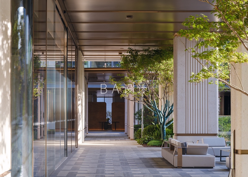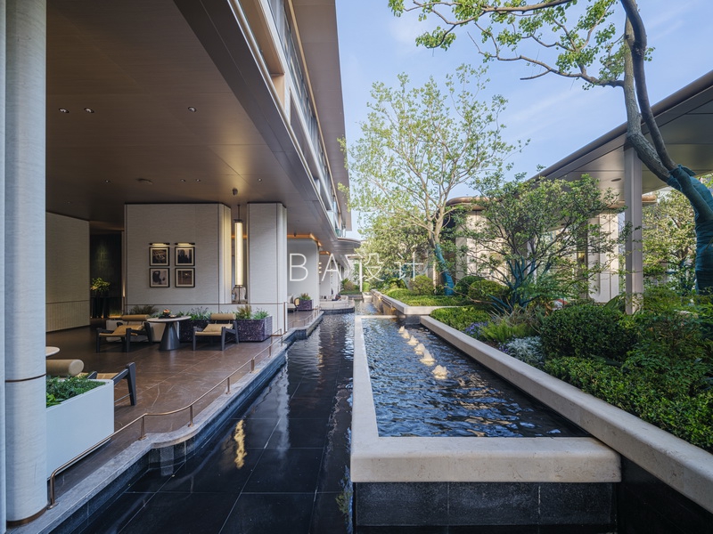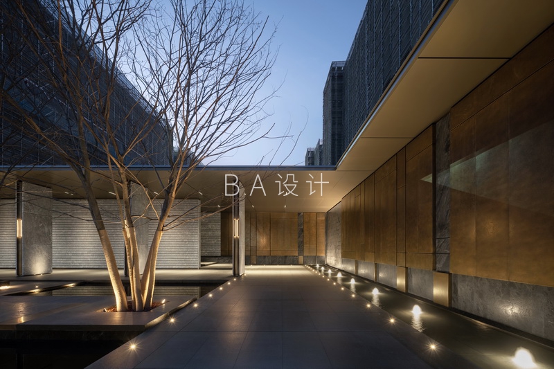 项目以“东方隐奢”为核心设计理念,创新融合金陵古韵与都会风尚。BA将传统江南园林的美学融入当代居住空间,采用双首层立体园林架构,通过双下沉庭院构建多维景观视廊,让140米轴线空间蜕变为"垂直山水剧场"。
