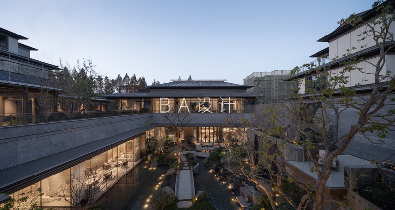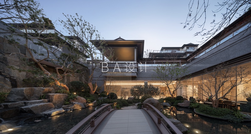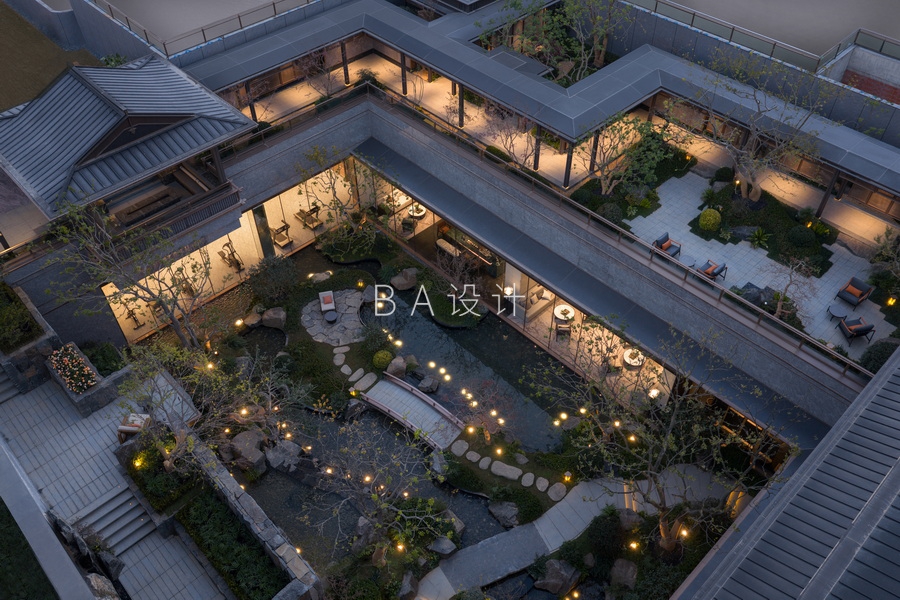 本项目设计理念,通过理关系、定格局、显价值等方面进行总体规划布局,打造桐庐高品质住区,树立行业标杆。通过标高的分析,结合未来规划可持续发展,确定三宗地设计高差。本次2#地块的场地标高设计,根据以上情况统筹考虑,设置两级大台地标高,台地商业打造丰富的市政形象展示面。再从城市建筑朝向、城市界面等方面,确定最优建筑朝向。同时尊重在地文化,提取传统内核,将宋风再演绎传承。最终形成一轴一带一心多节点的总图规划结构