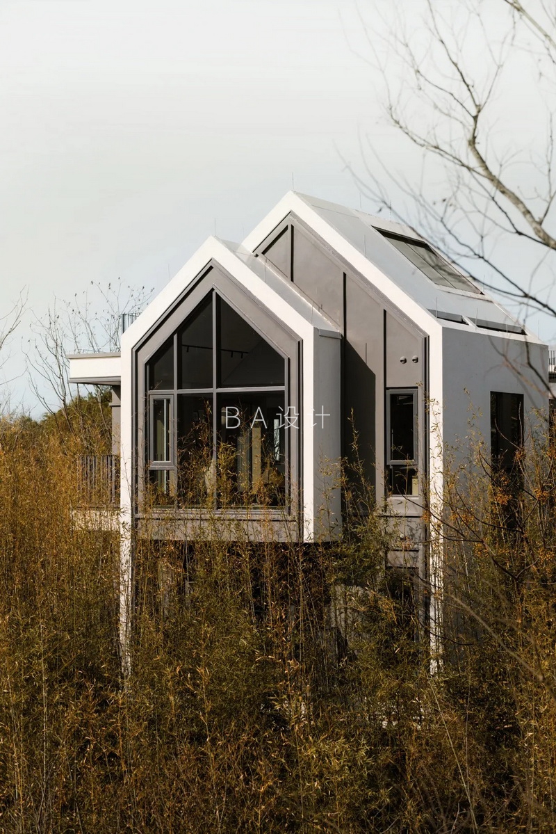 项目用地内有山有田,地形丰富,和现代建筑风格非常契合,但也因复杂多变的山地条件,在设计时也下了一番功夫:山地道路施工难度大,以最小的工程量设计园区内道路;排布车位避开大坡度路段;统筹南向采光面和景观面,着重注意北坡和侧坡上的户型;利用地形做出建筑高差关系,最大化利用景观面;考虑人行入户道路与人行组团路的关系,优化入户体验。